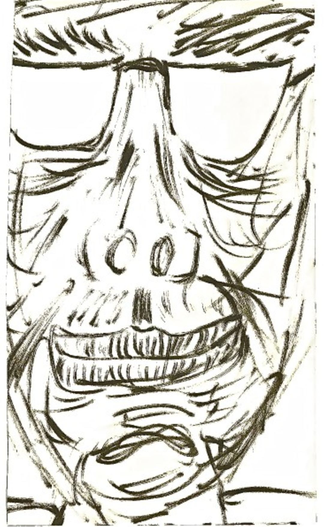The quick strokes were laid down first and then I followed with some outlining. Again, the choice was to imitate a reverse exposure style we can see from Frank Millar, only without reversing it or doing negative space drawing.