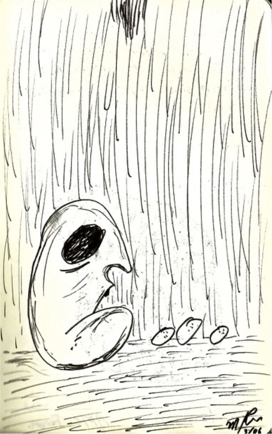 Not much to say other than it is a simple line drawing, straight from my imagination, or memory. Marker on paper seems to be the rule here.