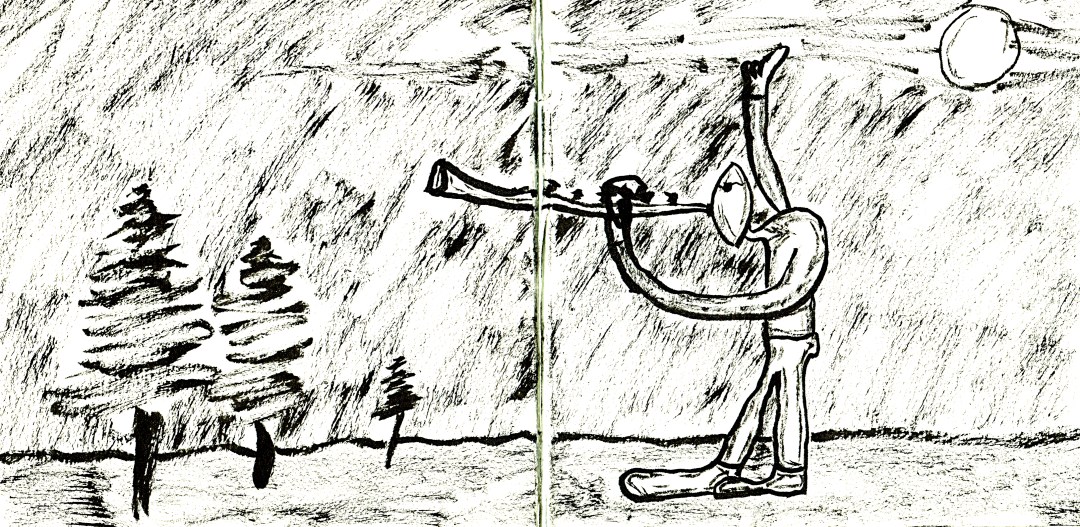 Never being content that I’ve exhausted the possibilities of my Dreamers series, I occasionally let the impulse go and draw new versions… I started taking the music outdoors… I realize that the feelings these pictures evoke in me become more free and expansive when I take the musicians out of the confines of the jazz club… I image the universe is listening and getting the rhythm.