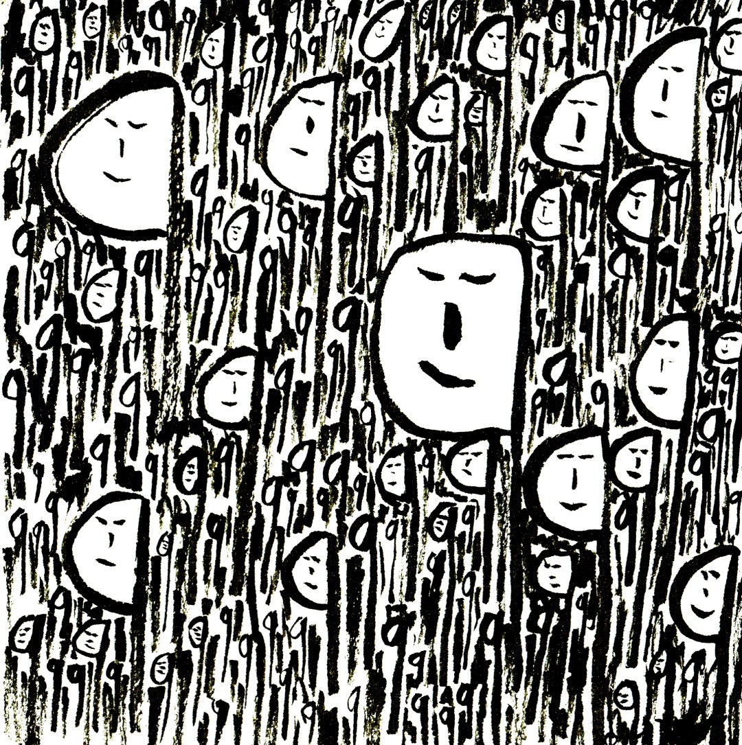 Start with the big ones, add the facial features, then add increasingly smaller faces around the bigger ones. Have fun!