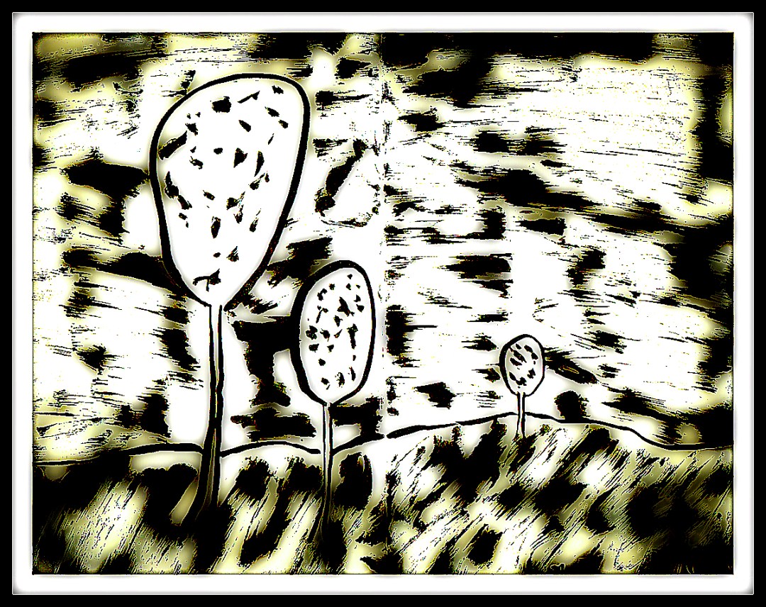 One of my favourite books to read to my daughter was Bringing the Rain to Kapiti Plain. The story flowed and moved the static images by our minds eyes. When I think of trees, I often go back to these images. I have to admit that I find a desire to credit Van Gogh in the way I make my brush strokes. There’s some Dr. Seuss in here as well and a desire to darken his imagery into something more sinister.