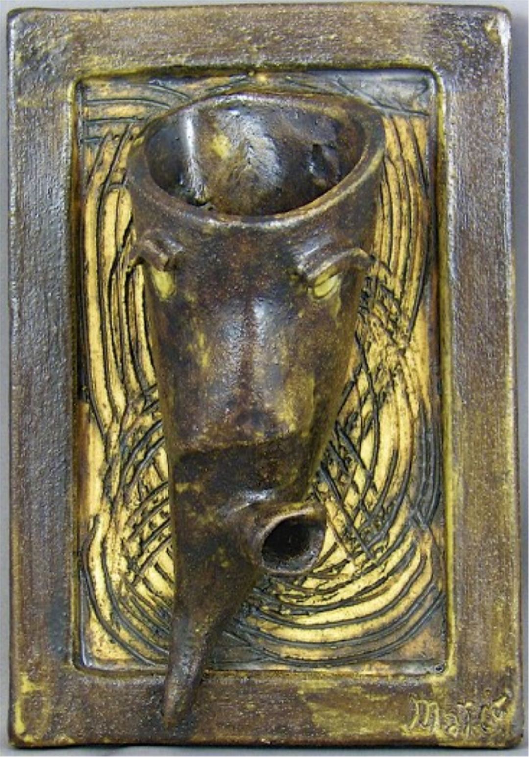 Reaching for and achieving a primal expression, we can only guess the circumstance of this expression. Was there dance, a momentary trance, or a warrior”s stance? The rough finish is very masculine and somewhat cold. However, there is nothing cold in the passion or strength of this face. It is defined in its approachability. I imagined the rhythmic music mounting to a crescendo all around this piece. It isn’t only a spectator, he is a participant in this celebration. Listen and hear what he has to say.
