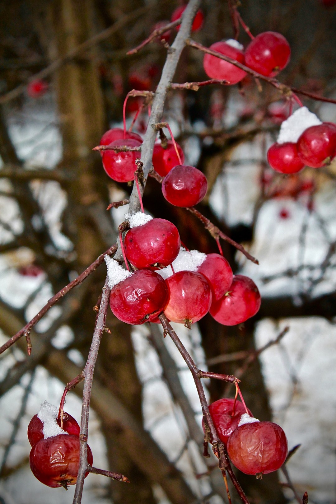 Well, that got away from me a bit, and I’m back again. I decided to catch this shot because of the vibrant contrast of the red fruit compared to the dreary backdrop. The light came from my flash, not the sun, nor snow. It was a cloudy and dark day, but these fruits shined 40 feet from the roadside. I hope I can find them as vibrant again this year.