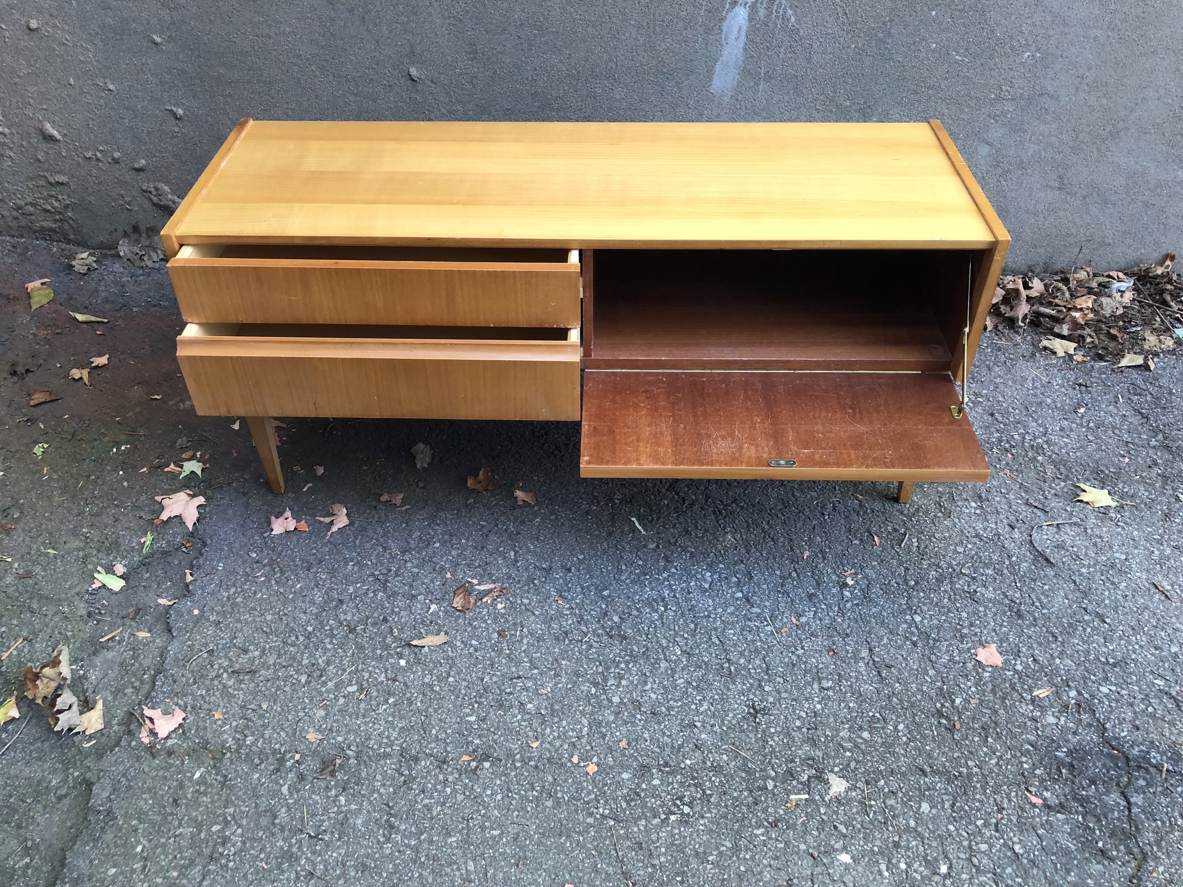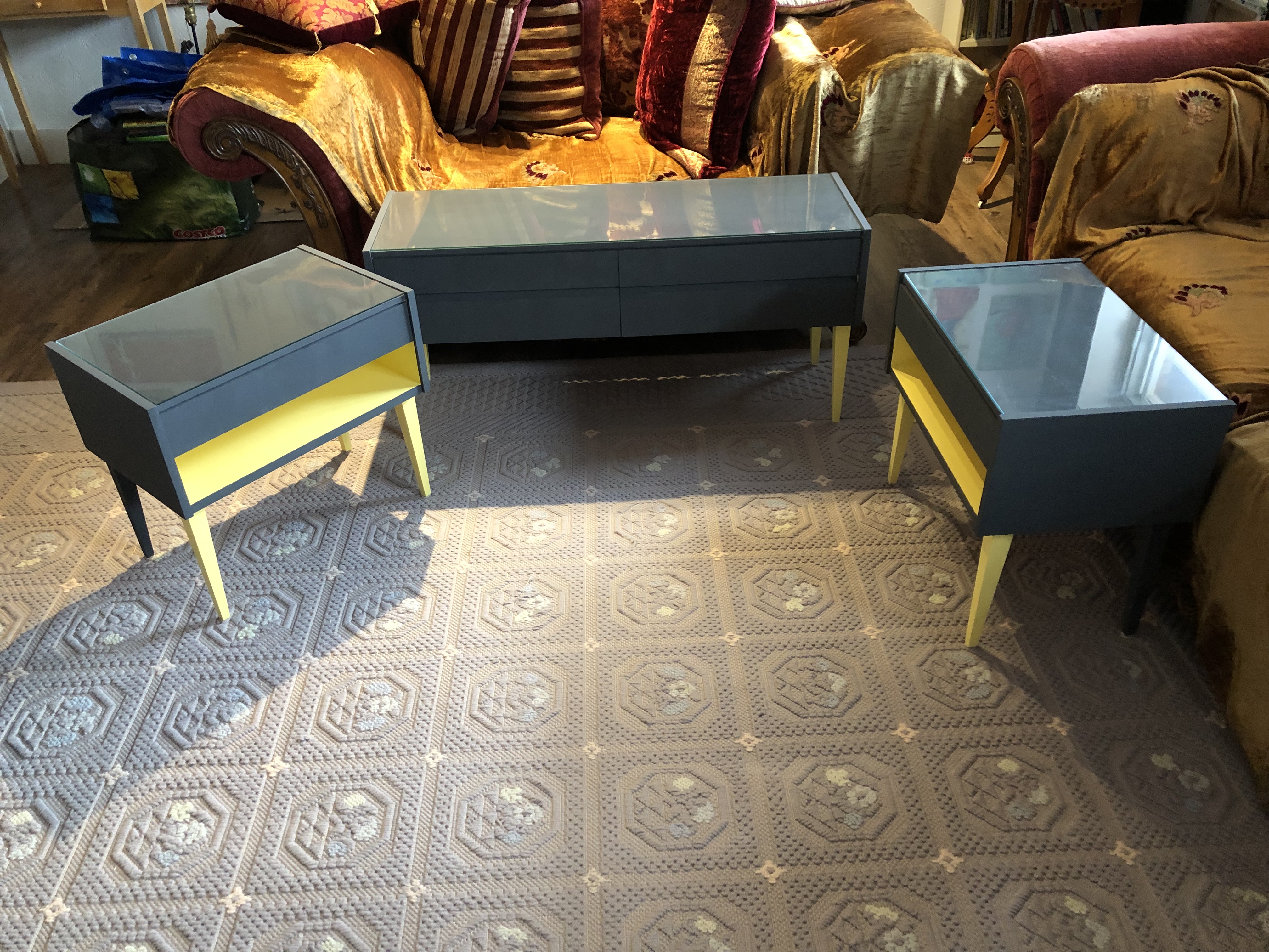 I almost didn’t take this set of sideboard and side tables, because it lacked pizzazz. Something told me there was more to it and since they were small, I grabbed them to see what I could make of them.