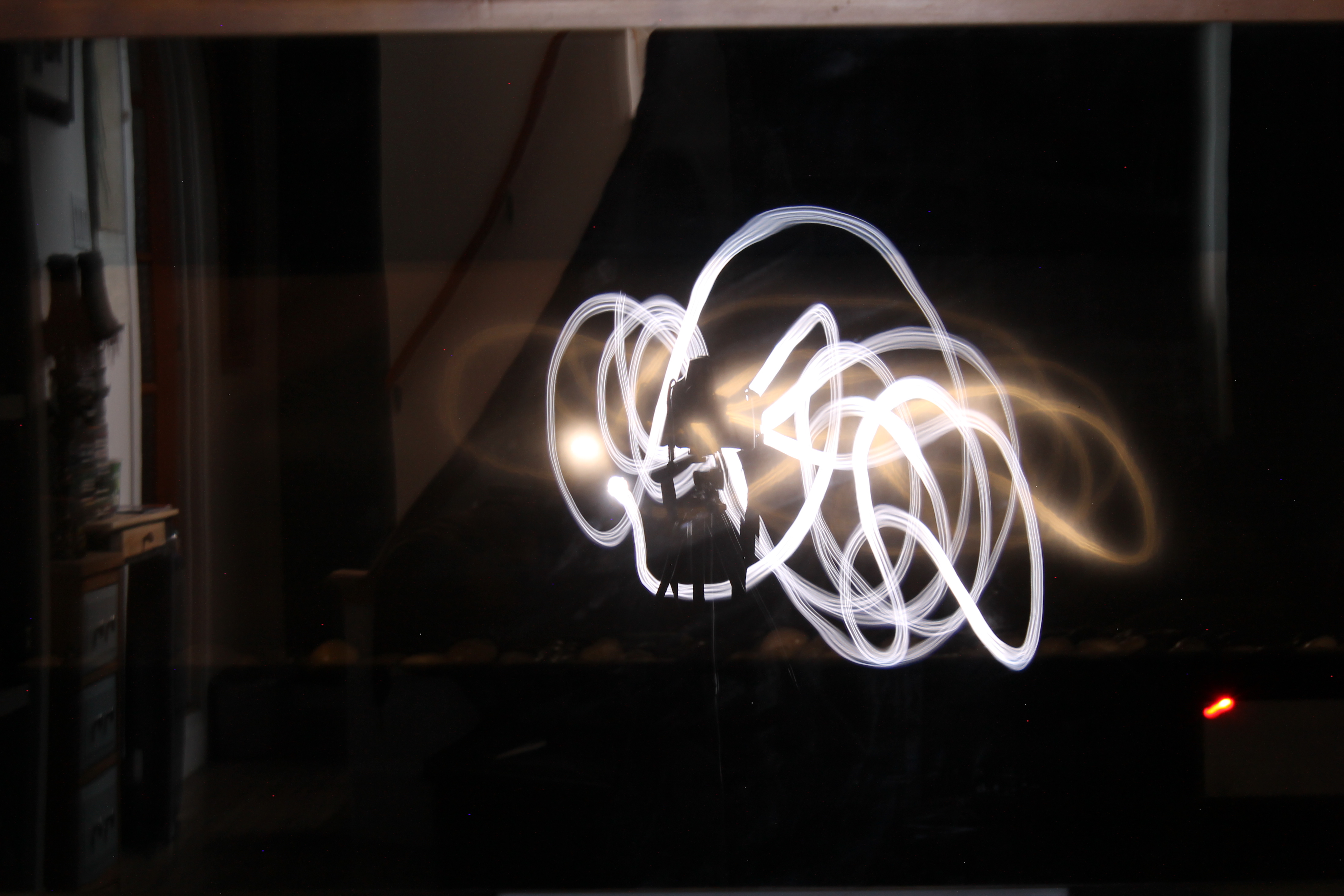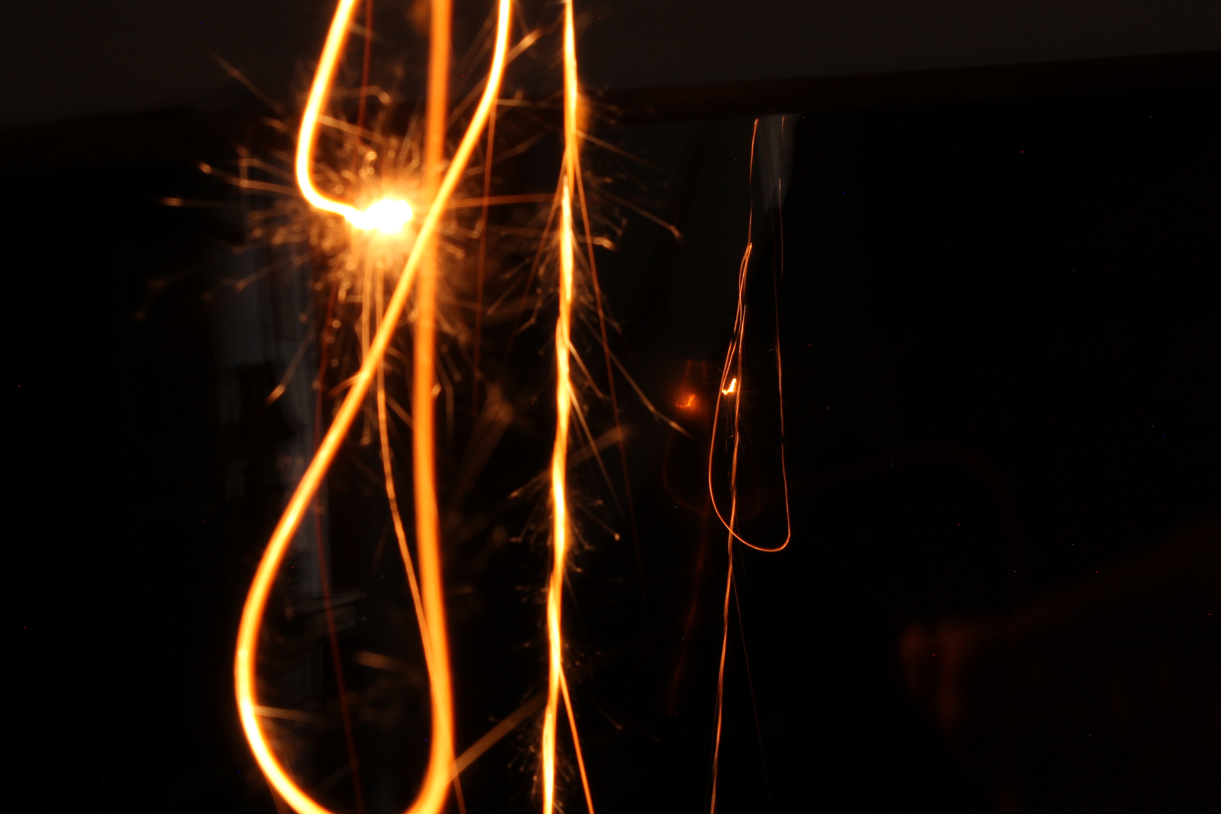 9 – IMG_1638: At home, I moved a sparkler in front of the camera, uncertain of the speed I should go or how that would play out. This was an unplanned exploration. The image gave me a baseline idea for what to instruct my daughter to do in “Sabine in the sky with diamonds”. So far, in the dark of my basement, f16 gave me the most aesthetically pleasing colour and light intensity results.