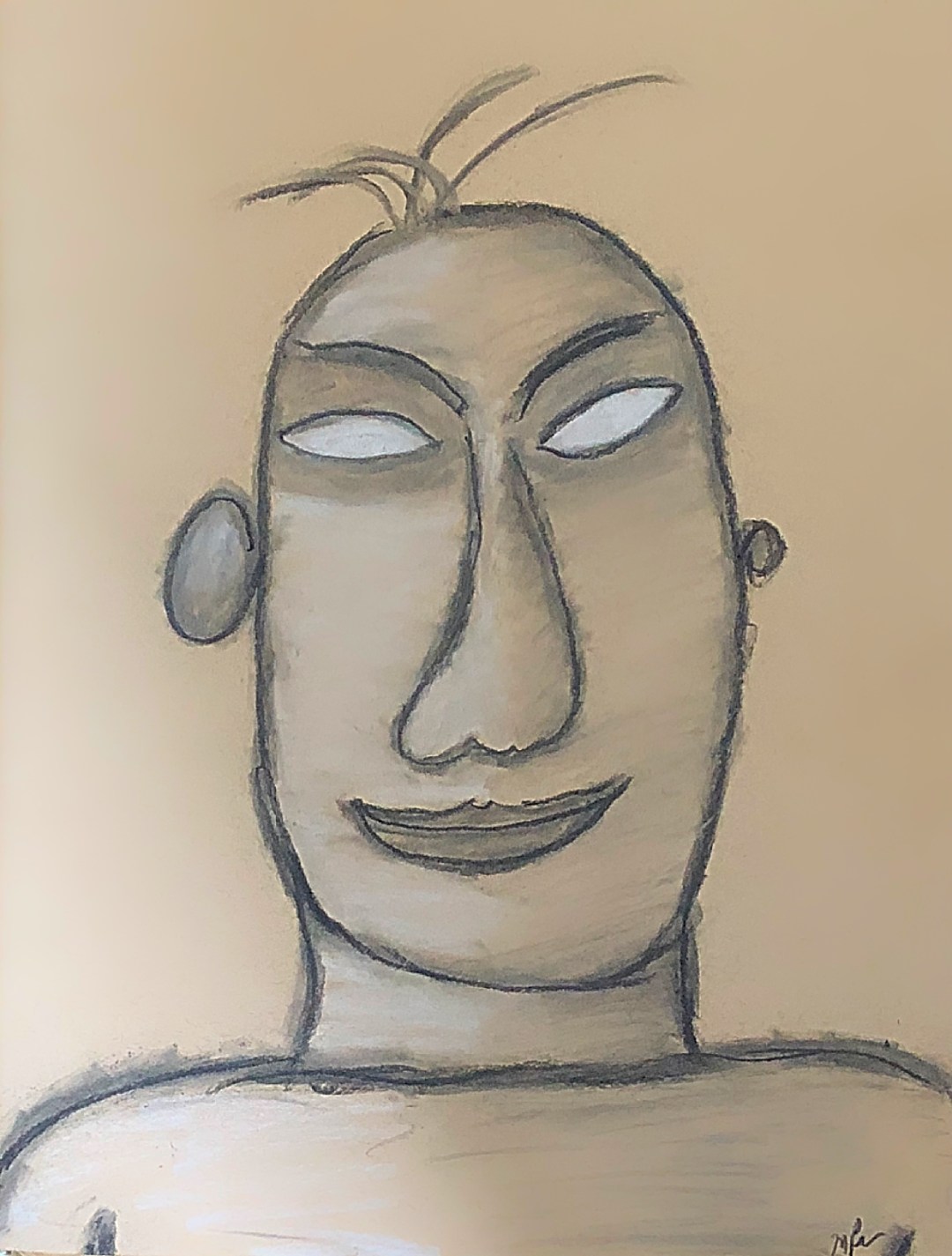 I finished another sketchbook a few days ago and felt this was the right time to try something new. Well, not exactly new to me, but something I haven’t played with for quite some time. I’ve been wanting to draw again with charcoal, but the eczema on my fingers has been pretty bad for a little while now, so this kind of dust on my skin isn’t helpful. I figured I could either wear rubber gloves (which I didn’t this time, because I got to excited to draw and forgot them on a shelf), or I could use a rubbing pencil (it’s that tightly rolled paper that looks like a headless pencil, usually sharpened at both ends). I used the pencil, and still got my fingers dirty, but it was worth it. I had fun doing this next batch of drawings and the pleasure I felt seems to have shone through in this face.