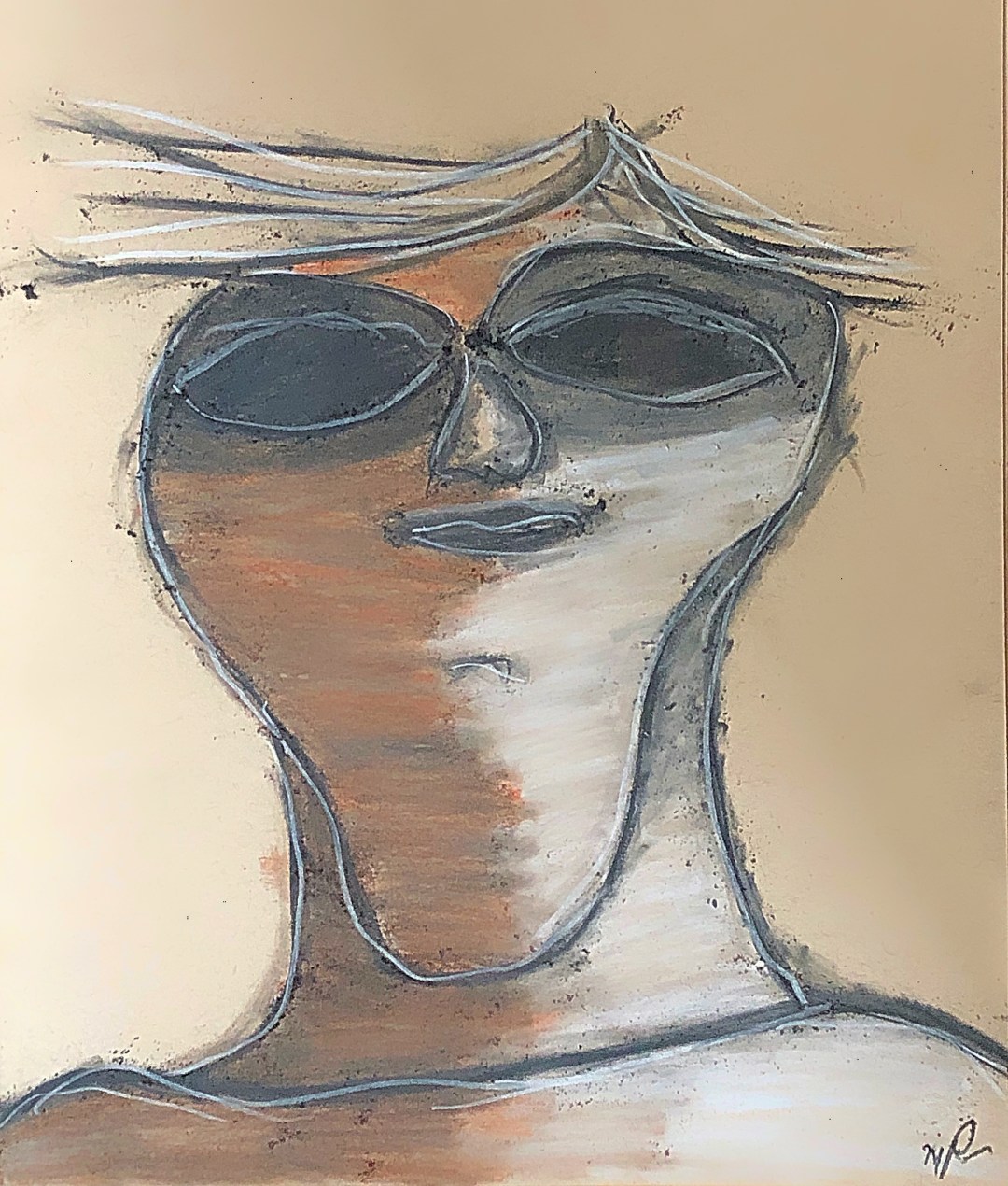 I just let go with this one and when it was all done, I felt the mess of charcoal dust just added to the story of this character. It was born in a tempest of self-doubt and confidence. Once the title came to me, so did the story. This guy is a sometimes adventure guide, sometimes surfer, sometimes storm chaser. His solid chin leads him everywhere and he is keenly aware of the attractive qualities of his demeanour and bulky muscles for the fairer sex. it seems like his alien strangeness may be completely overseen due to his machismo.
