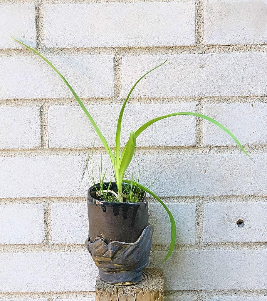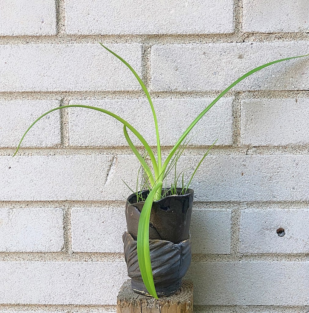 Please take note that there are two different pots shown here. I planted a flower from my garden that returns every year. I’ve always known them as snapdragons. The become a bright orange-pink and look like a cross between a crocus and bird of paradise. The goblets they are now living in were from a series I made a few years ago, after leaving school and starting an apprenticeship in a private ceramics studio. The master, Marie Côté, guided me, but let me explore different clay bodies. I had seen some amazing combinations that they told me in school just couldn’t be done. I knew it could when I saw Keon De Winter’s porcelain and stoneware combinations. I chose to try a variety of different combinations, from porcelain to terracotta, and all in between, then add my raku-style touches to the finish. You see here a could of the end results. The first two used heavy-grog earthenware around black porcelain. The last two used a raku-stoneware body around a red terracotta. As you can see with these last two, a chemical change caused the red clay to become brown in the high-firing temperatures.
