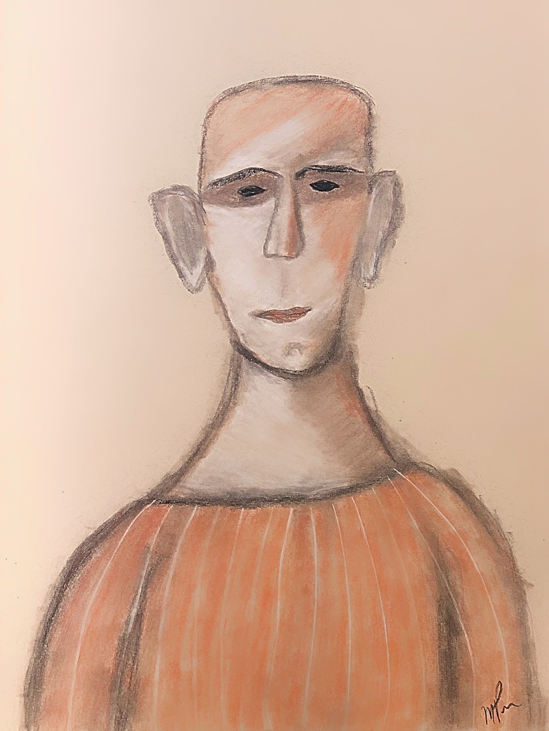 I think he was meant to be enigmatic. I usually finish my drawings with a sharp outline in black and white, but as I was making this one, I kept hearing a voice telling me not to go too far. I was cautioned while doing the thick outlines and to blend them and blur them. This is one of those drawings I feel the muse directed. I’m not sure I can describe it any other way. Thanks to the muse, I made this.
