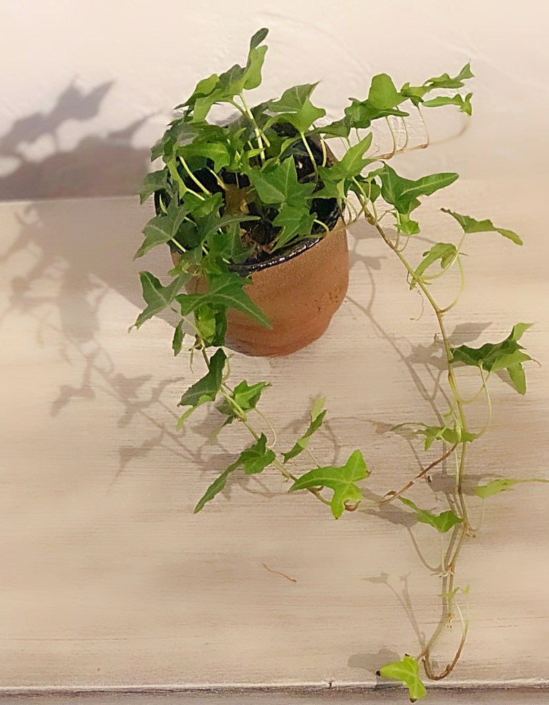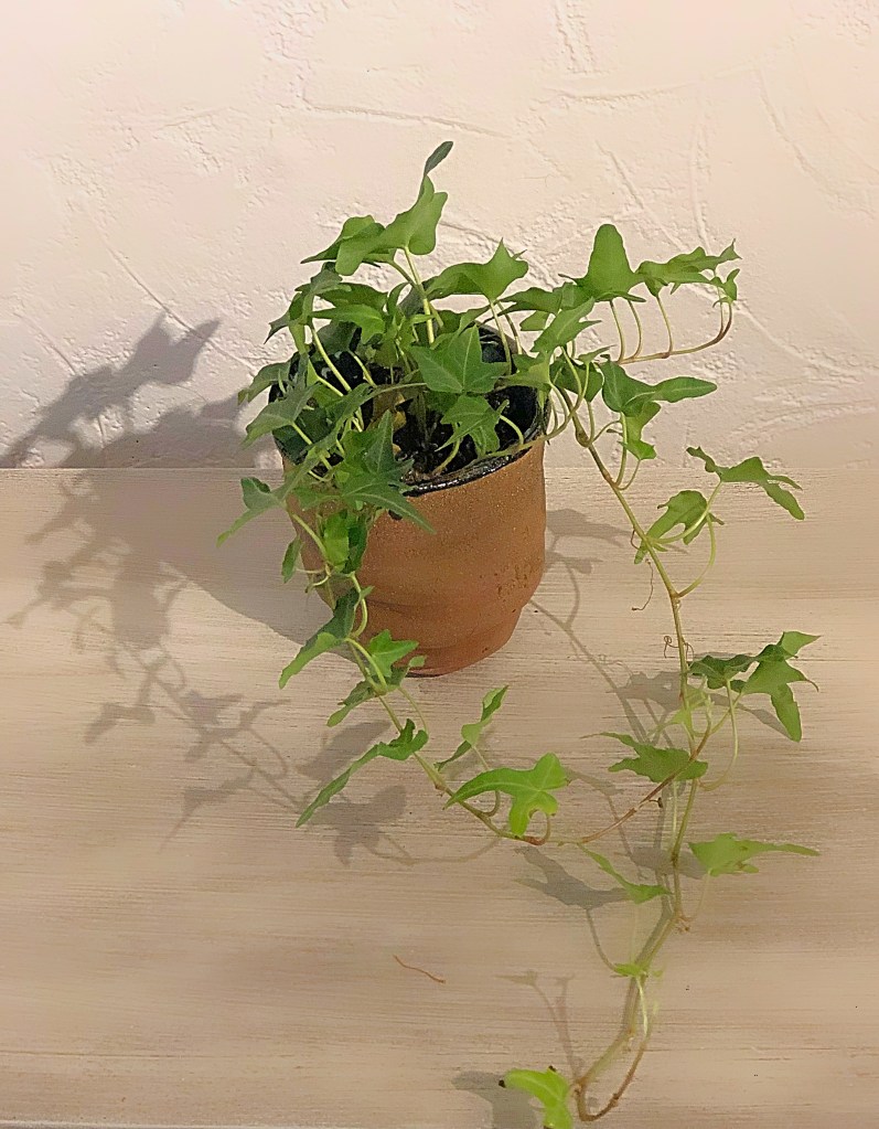 The more I look at it, the more the green really contrasts beautifully with the brown pot. Again a slightly different type of ivy… it’s in the coloration of the leaves. it might have been my imagination, but it felt like this one started growing as soon as it was transplanted to this pot. I’m not complaining, and I love how full it looks.
