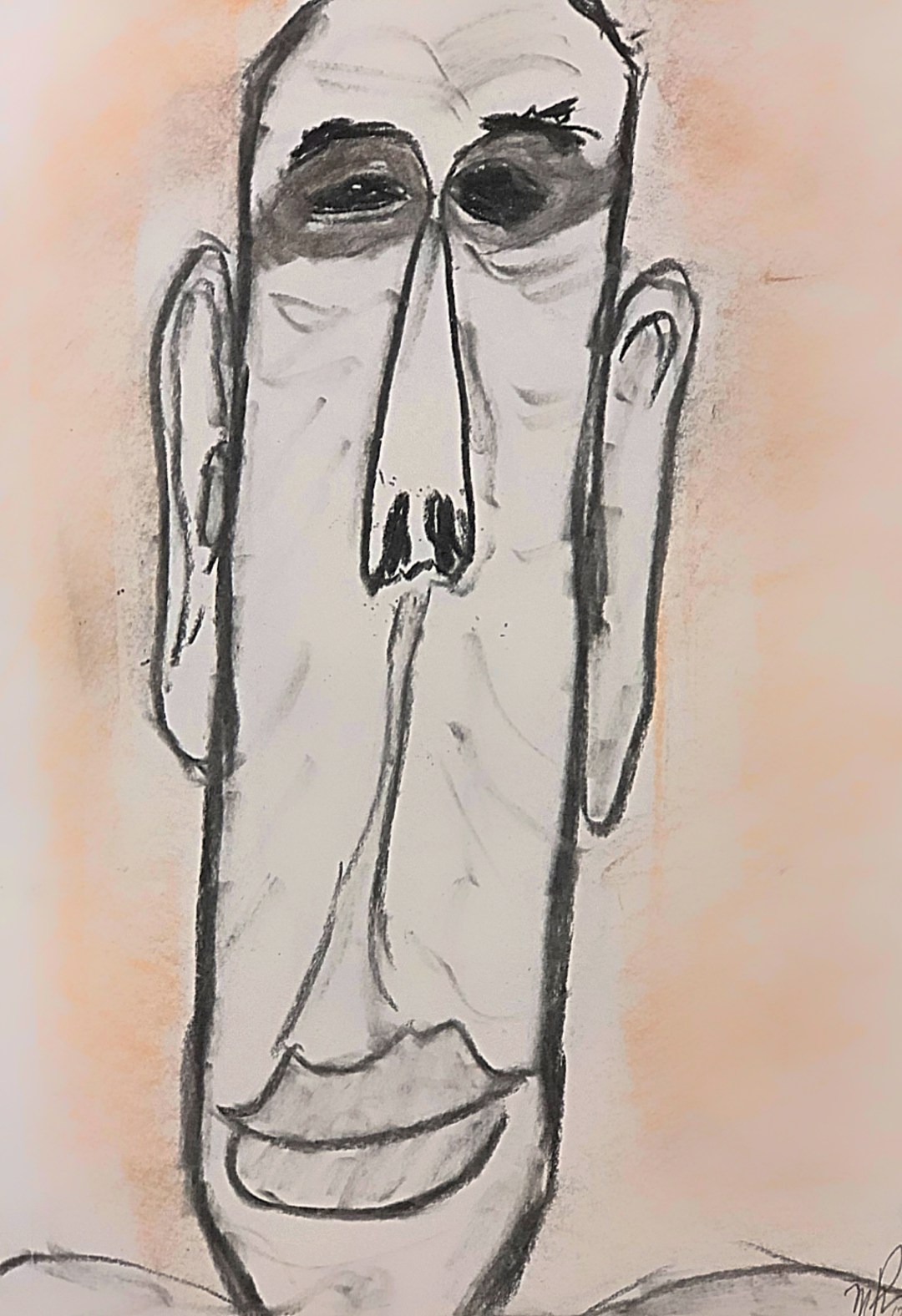 Charcoal sticks and coloured charcoal. Simple and spontaneous drawing. When my head suggested adding colour outside the face, I started to see who he was.