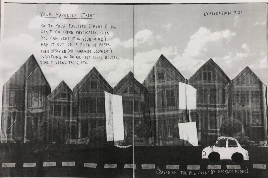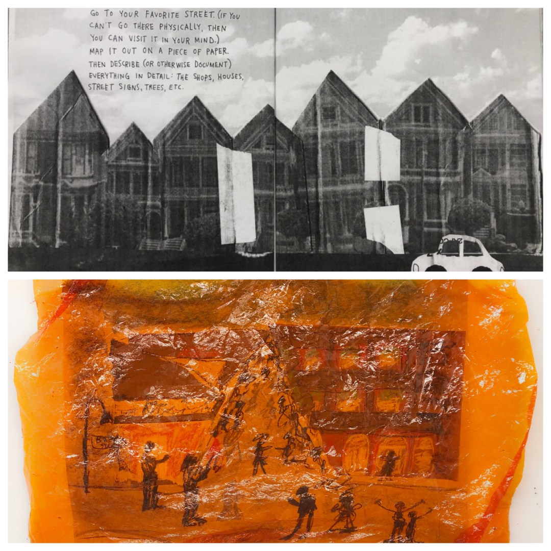 Our teacher gave us activity prompts from “How to be an explorer of the world” by Keri Smith. It’s filled with art prompts like: Make a collection of found smells and describe them; make a collection of found paints, but don’t use paint; and mine, Illustrate your favourite street.