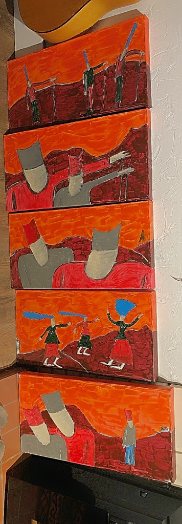 Then I proceeded to make a series like I normally would for The People of the Land. Each of them is 12″ (30cm) x 24″ (61cm). This is the first picture of them I’ve taken. I hope to show the rest of the process from this point on.