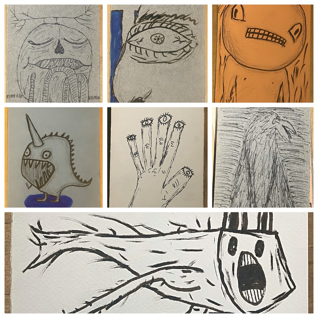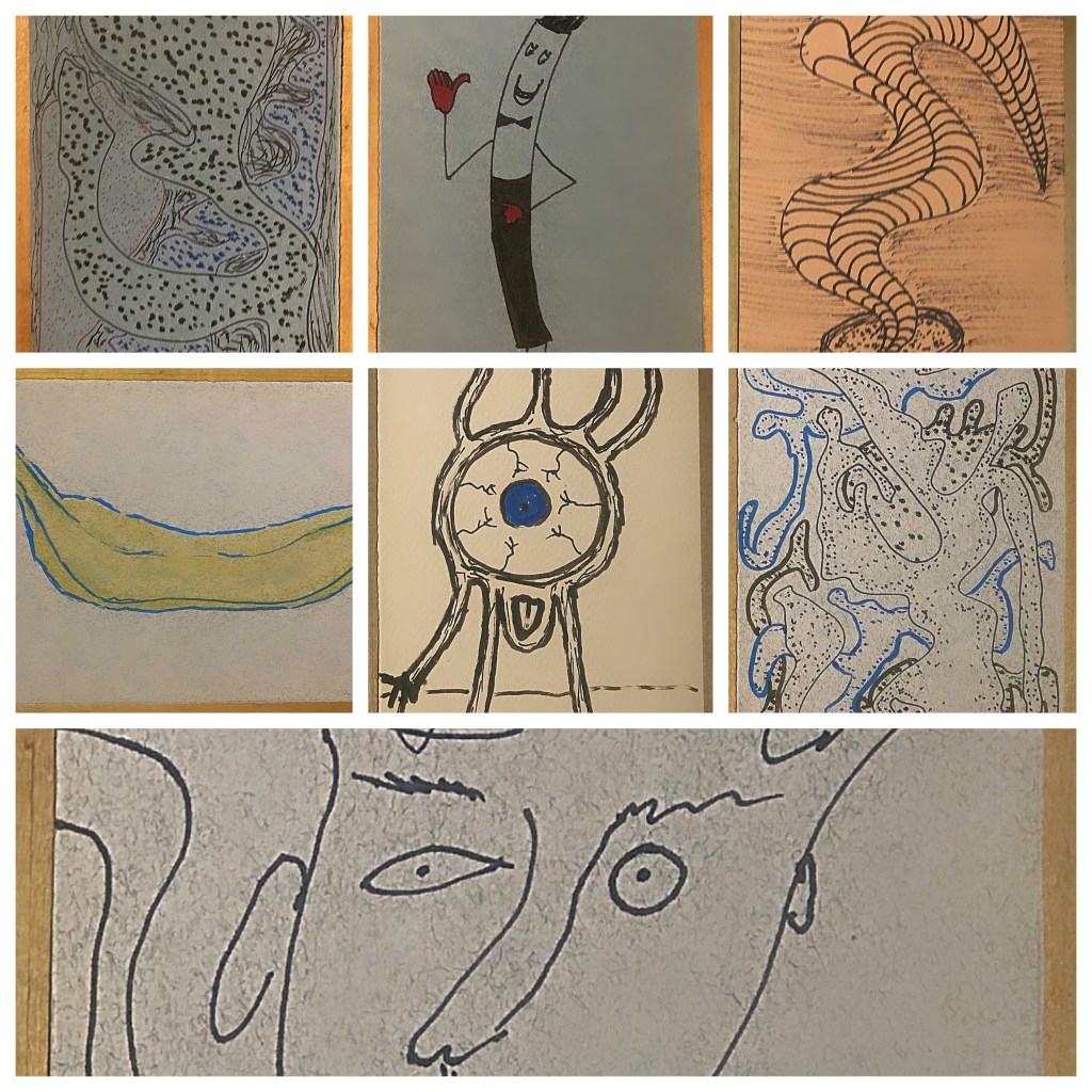 Yesterday I posted the drawings I designated as the ones I don’t like out of the 40 or so in total. What follows are the ones I did like… sort of… Let’s see what unfolds each day when I write about them individually.