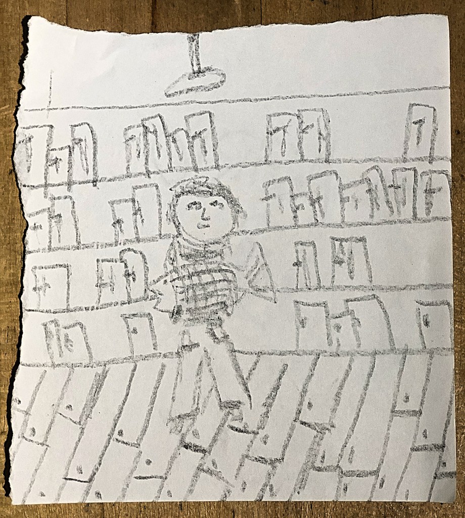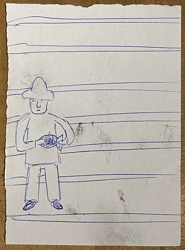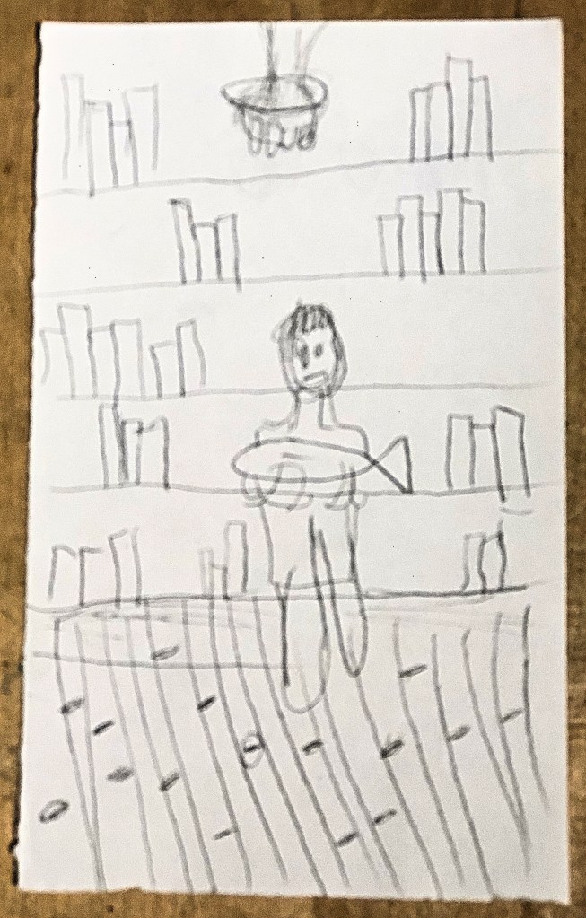 Who knows what the broken telephone game is? You know, it’s the one where a group of folks sit in a circle and one person whispers a word into the ear of the person on their left (or right, depending on the direction you choose to progress), then that person whispers what they think they heard to the next, and so on, and so on, until it gets back around to the first person. Invariably, the word said at the end has changed from the original. (All the drawings are at the end of this post, in the order they were drawn, starting with my original drawing and progressing through my classmates versions of what they saw)