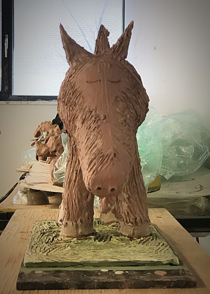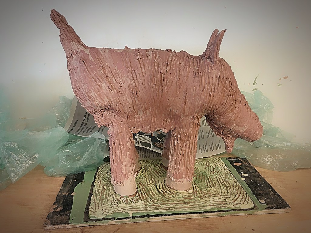 At the time of writing this post (March 18th, 2020, it looks like this one might not get finished. I would love to see it bisqued, at least. I have been visualizing the finish on it, using underglazes, very little glossy glaze, and some stains. I want to bring out the hairs on the goat, and make it look smoky.