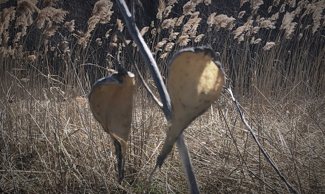 Milkweed pods always seemed like alien plants to me. I could probably give this fantasy to my Sunday afternoon movie times as a little kid when I watched flicks like Invasion of the Bodysnatchers, Day of the Triffids, They Come From Outerspace and other creature features. I learned early that there’s nothing scarier than what Mother Nature has created all around us… we only need to look at it from a different perspective. These pods were swaying in the wind as I walked by and I felt there was something more to them. I stopped, walked around them, close to them, and far away from them. I took a load of pictures until I saw it… they reminded me of birds sitting on a branch with their feathers all puffed up to stay warm in the cool wind.