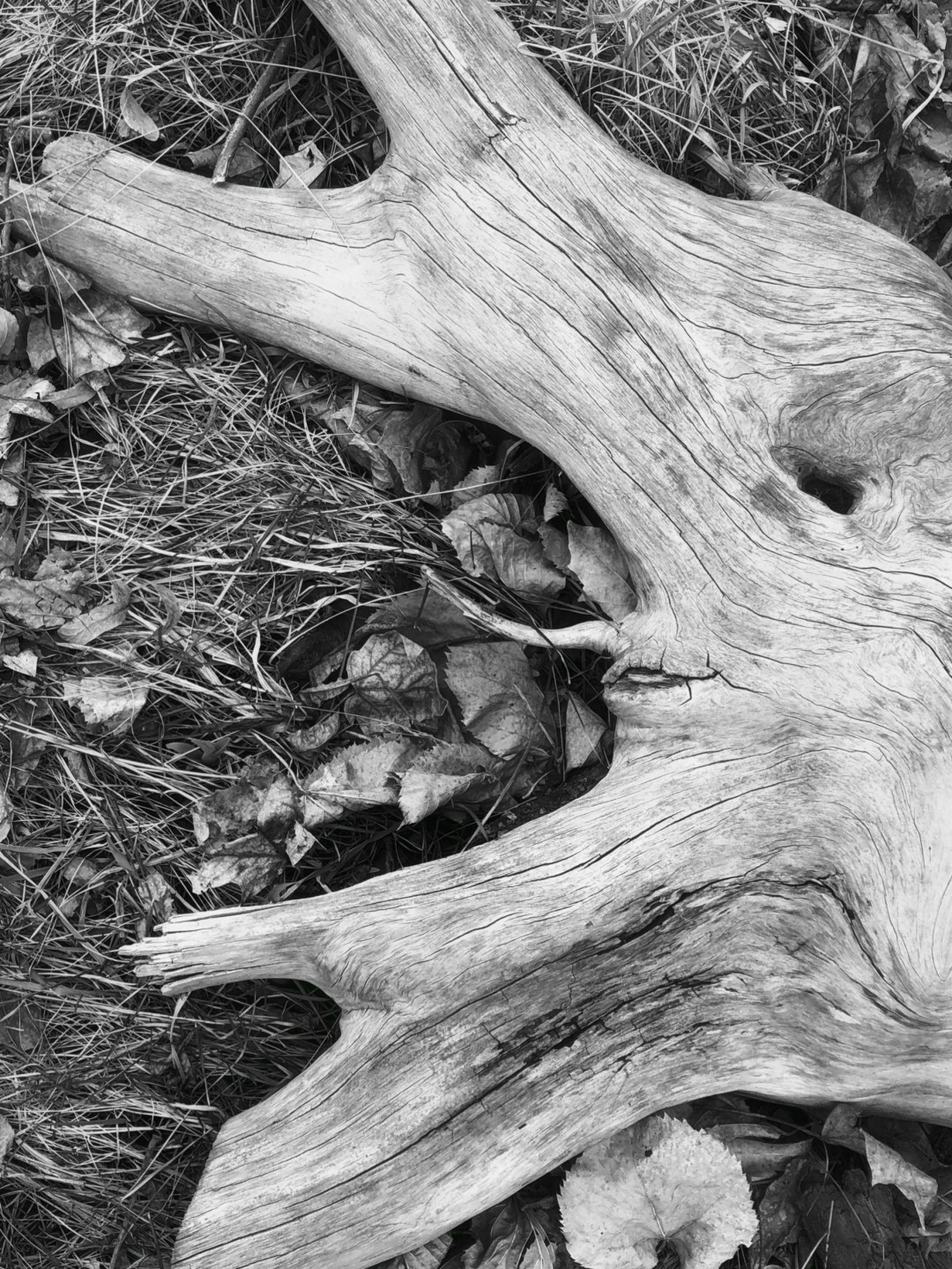 Someone managed to cart and toss this enormous stump next to a local walking path and no one seems interested in moving it. It’s been there for a few years now and I see it every time I walk the path, and every time I stop and ponder it. I don’t really know what is drawing my attention to it. I keep looking for faces or patterns in it that might tell an interesting story. I’ve taken dozens of pictures of it and cropped them in all sorts of ways, but still haven’t quite honed in on the image it reminds me of… until now. In black and white, with a lowered contrast, the skin is almost elephantine. There’s at least one small, mouth and eye, and the start of prehistoric horns or tusks… It looks to me like the monsters we see so much lately in movies like Godzilla or as far back to Willow. I don’t know for sure what I see, I only know I’m fascinated by this stump, and those who know me, know I really enjoy being fascinated.
