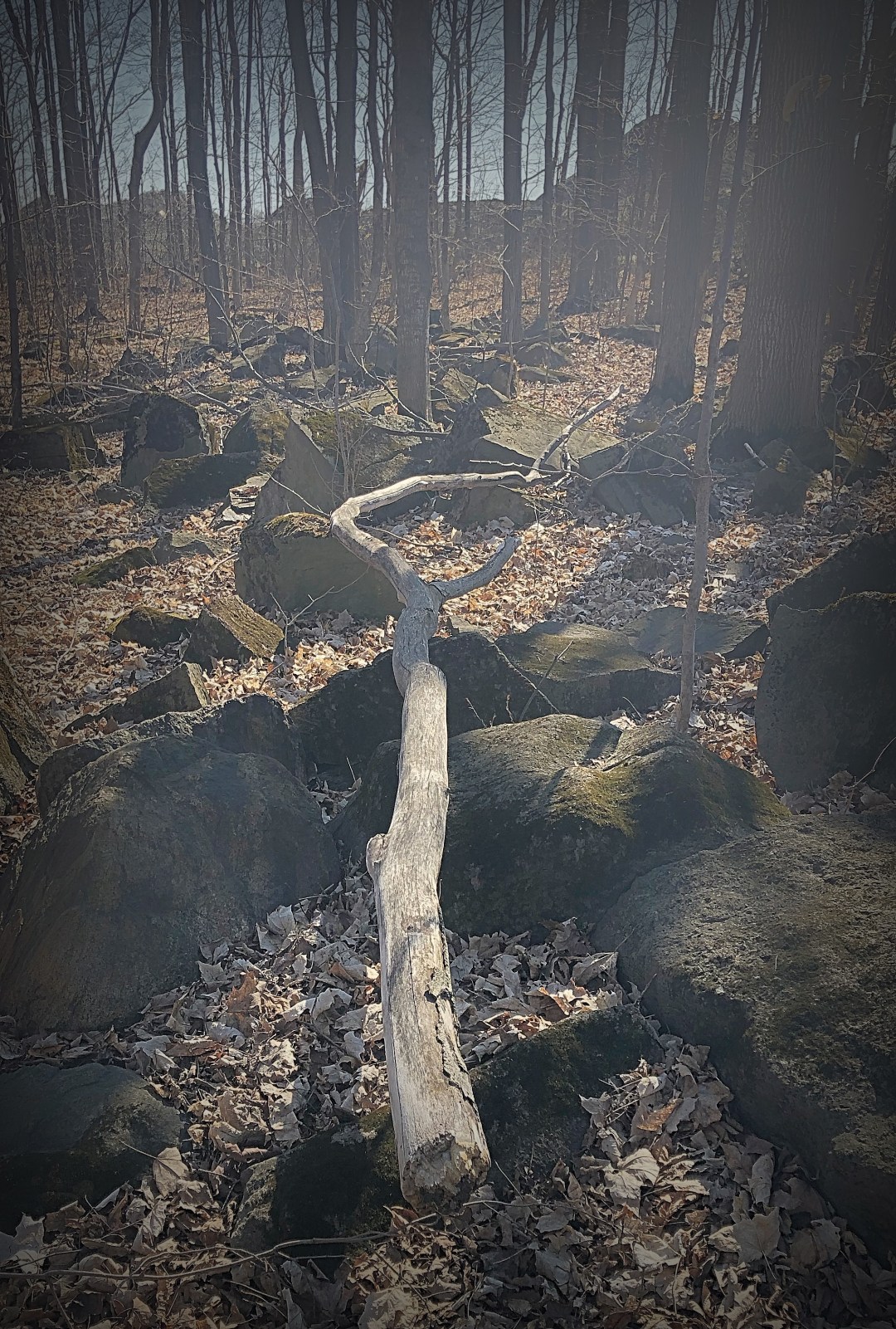 Inspired by Andy Goldsworthy’s work… I could imagine him wandering around small woods, dragging logs, branches, and trees this way and that, playing with how the natural light shines across the amazing textures, casting incredible shadows across the composition and his imagination. His photos always seem to force the eye to wander on a path. I don’t know if it’s intentional, but I find my eye often walking back and forth across his compositions – looking for extra details and hidden treasures he may have placed to perfect the composition. It is my hope that I have been able to capture a little of that magic in my composition.