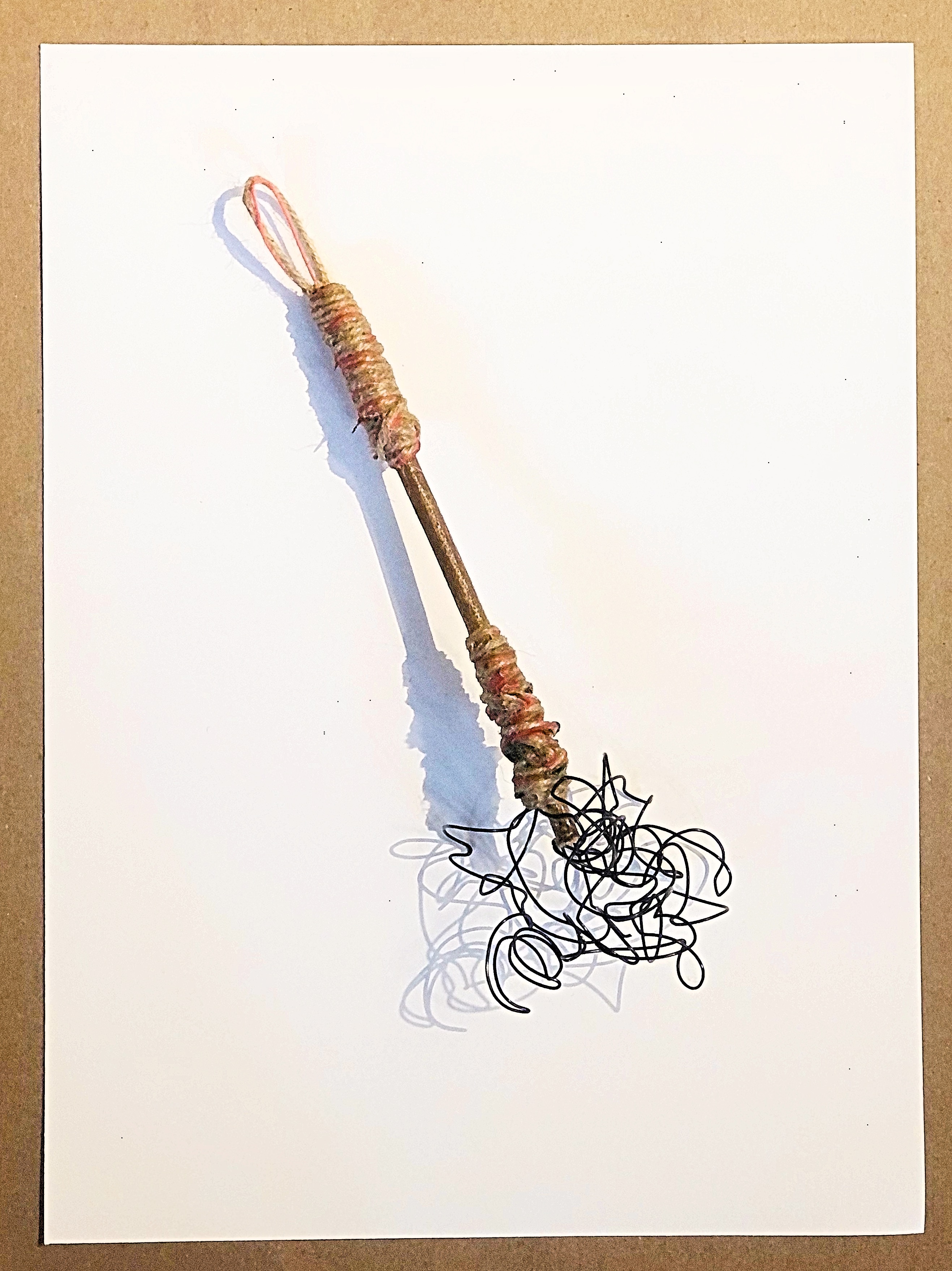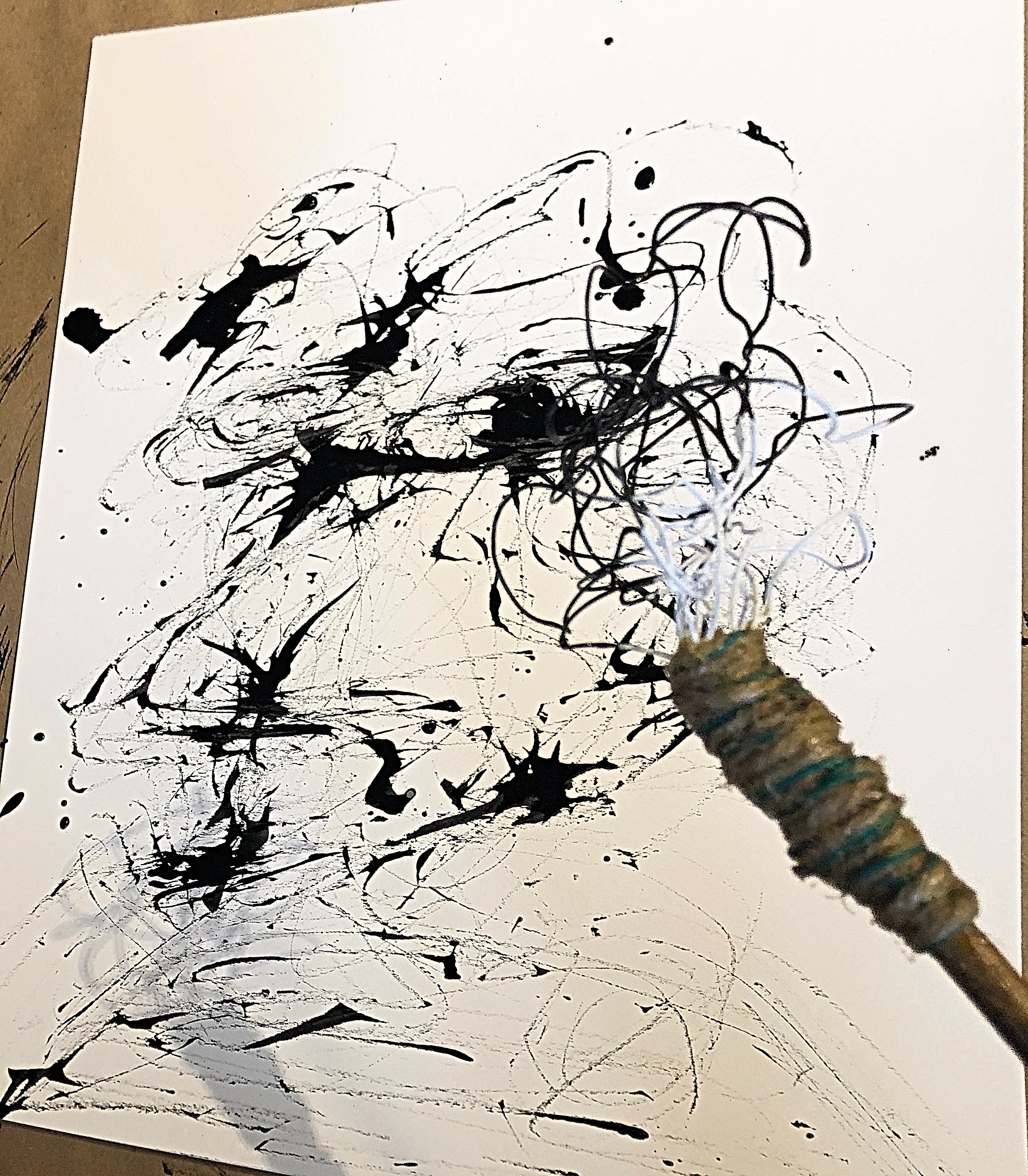 This is a really fun exercise that produces some serious and compelling works of art! I’ve done some very fun and experimental brush making exercises in the classroom and studio. Great for strengthening motor skills and cognition. It’s interesting to me that you had a very concrete goal for your drawing, and how your process led to a new representational insight via very abstract artistic language! Well done 🙂