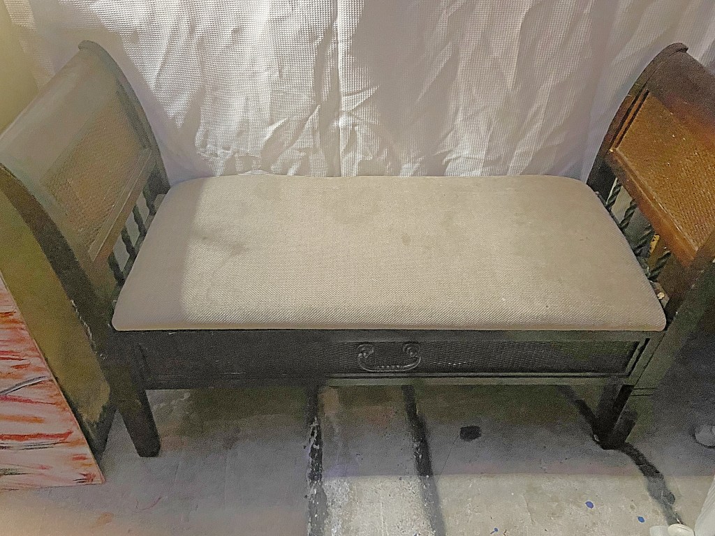 The bench is repainted in chalk paint and antiqued with finishing wax… this retains the colonial details on the piece.