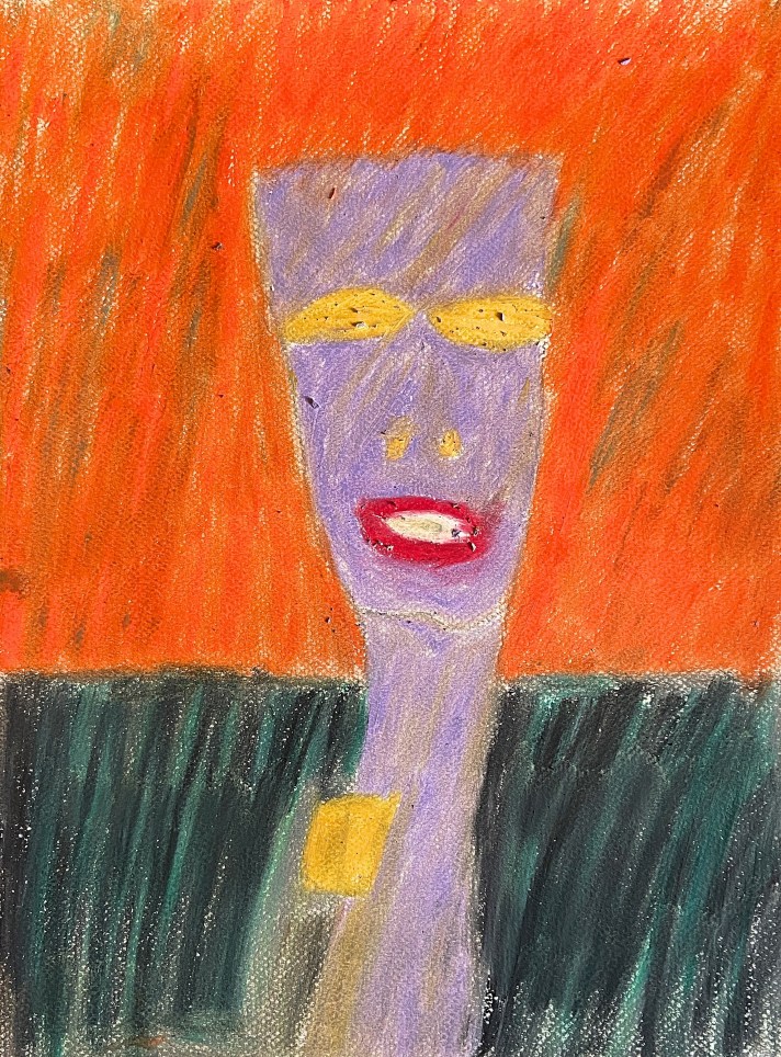 I wanted to play with colour a little more, but mainly I wanted to see what oil pastels might achieve. I apply several colours onto the paper then use a smudge stick to blend it. I’m not crazy for the results this time… maybe it’s because I got more comfortable with painting acrylics these past years. Maybe it’s because this technique works best with dry pastels. We shall see…