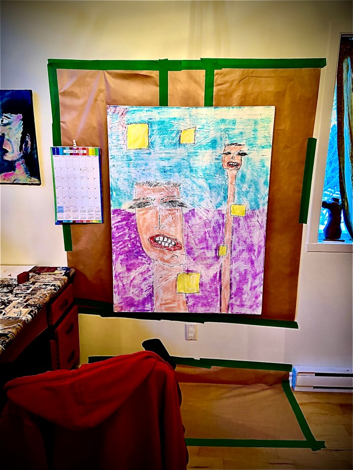 In the meantime… here’s a glimpse of where I’m working these days… the manipulation of the photo also helps me decide on next steps.