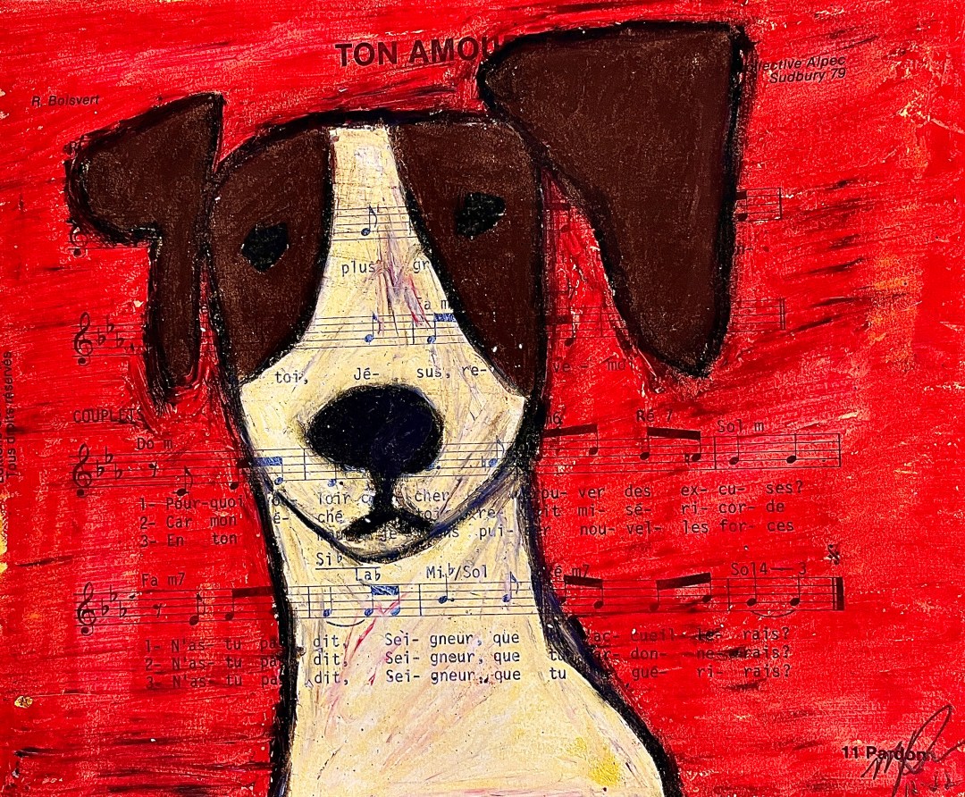I came across an image of a puppy face that reminded me of the expression of curiosity I so often see on my puppy's face. It was a black and white drawing and my mind almost immediately imagined it done as a series of offset prints in the Pop Art style pioneered by Andy Warhol. … Continue reading Pup in Red – Music-book Doodles 2022