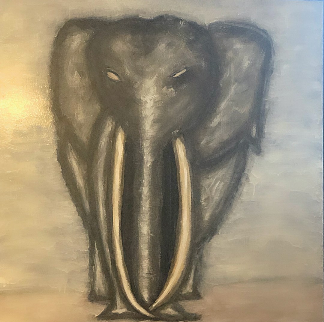 It's been about three weeks since I touched this painting. Partially because I haven't had as much time to focus on it, and partially due to not being sure what more to add. I still wanted to make the skin more muted and grey, but just couldn't visualize it. Sawsan has been looking at it … Continue reading Sawsan’s Elephant – She says it’s done!