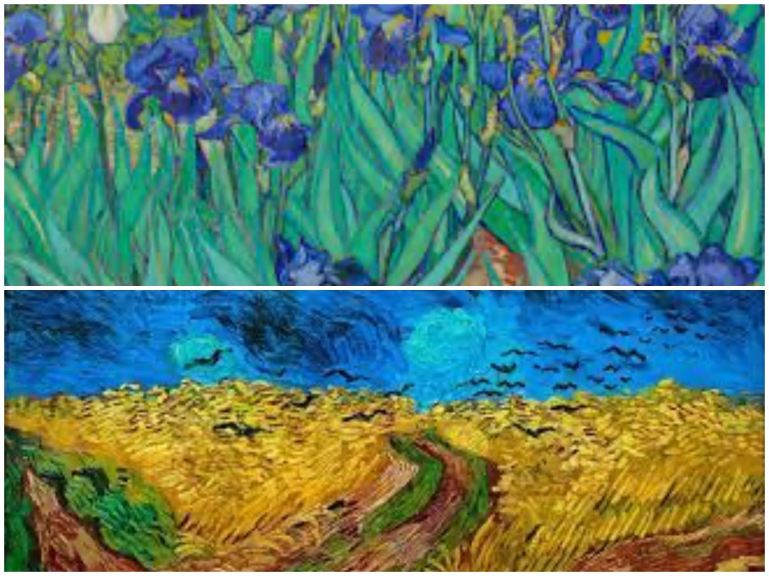 Compare and contrast Irises by Vincent Van Gogh to Wheat-field with Crows by Vincent Van Gogh – An ‘Isms’ Overview