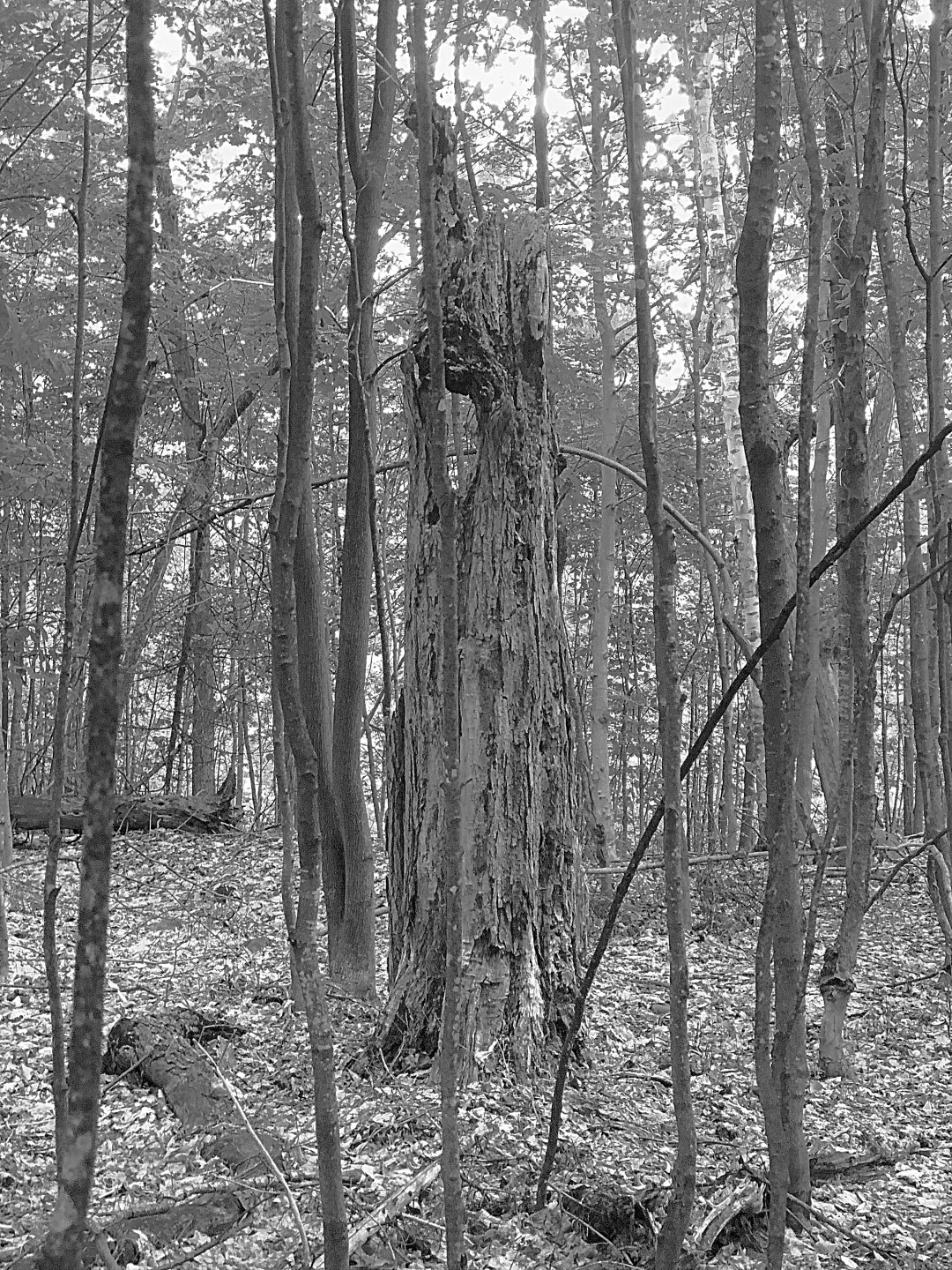 On a recent trip to the Laurentians, I was walking in the forest behind the pace we were staying. I came across this I posing sentinel standing in a small clearing. Clearly dead, desiccated, rotting, and pecked, and yet... somehow standing strong and imposing. The hole in the upper side sometimes looked like an eye, … Continue reading Forrest Sentinel