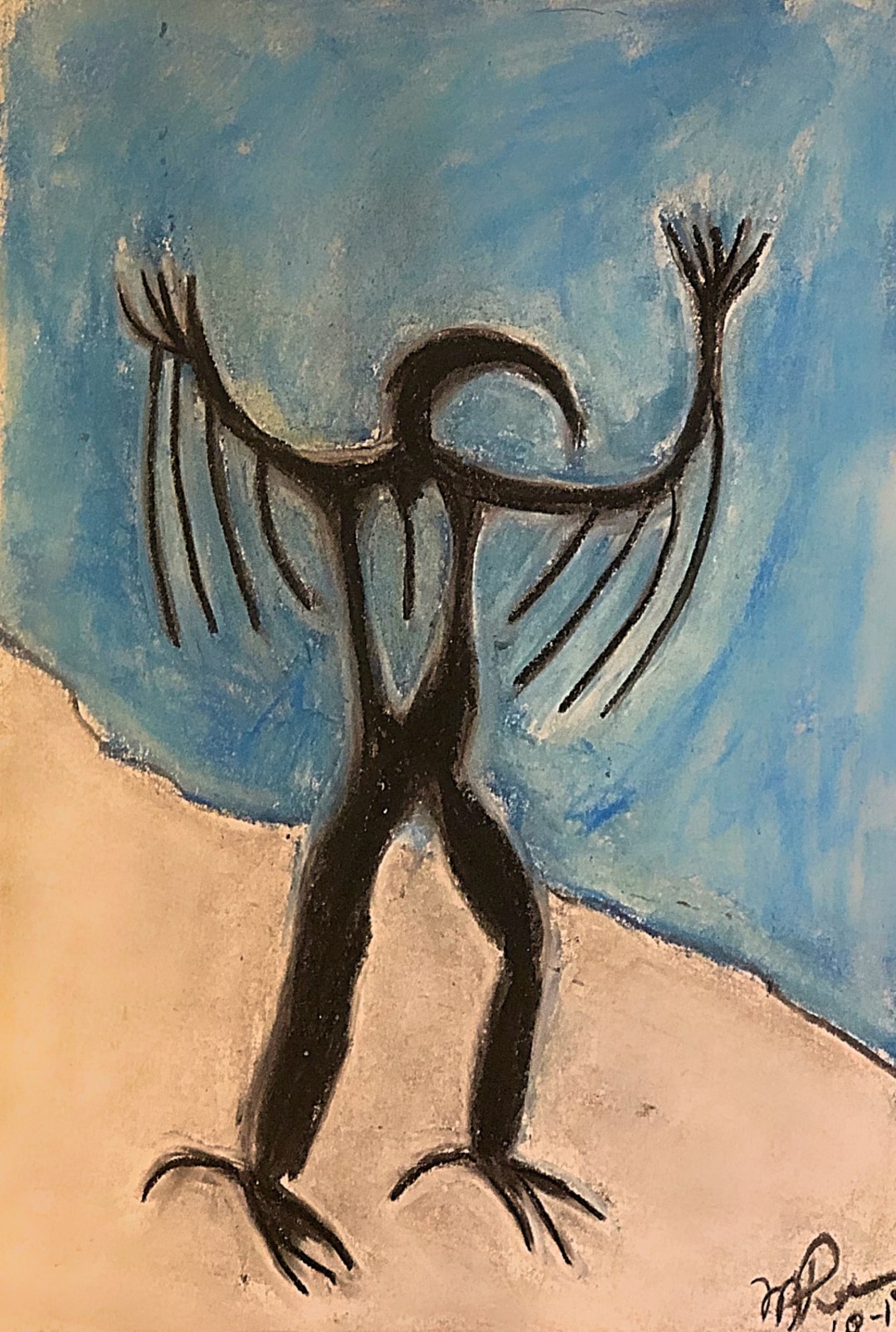 Inspired more from one of the stories from the Hopi, but also from descriptions of the Manitou. The funny thing is I found this curious book and the back cover said it was written from the perspective of a crow and I'm sure that's part of this too. All these creatures come from an amalgamation … Continue reading Study Of A Sky Spirit