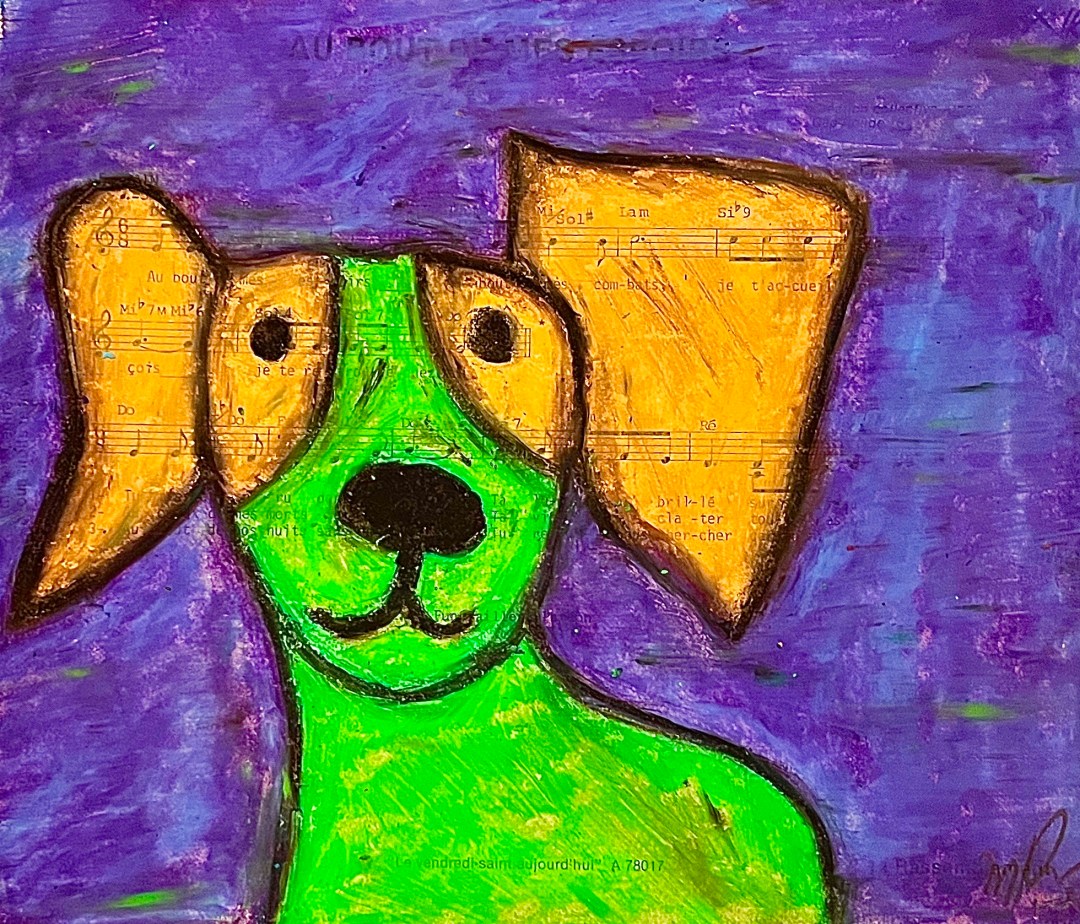 I came across an image of a puppy face that reminded me of the expression of curiosity I so often see on my puppy's face. It was a black and white drawing and my mind almost immediately imagined it done as a series of offset prints in the Pop Art style pioneered by Andy Warhol. … Continue reading Pup in Green – Sheet-music Scribbles 2023