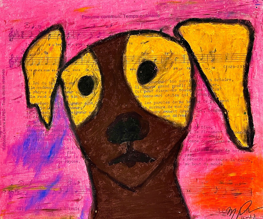 I came across an image of a puppy face that reminded me of the expression of curiosity I so often see on my puppy's face. It was a black and white drawing and my mind almost immediately imagined it done as a series of offset prints in the Pop Art style pioneered by Andy Warhol. … Continue reading Pup in Pink – Music-book Doodles 2022
