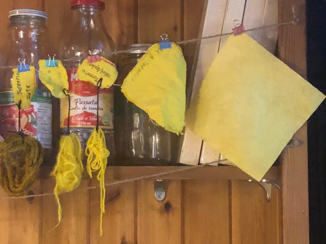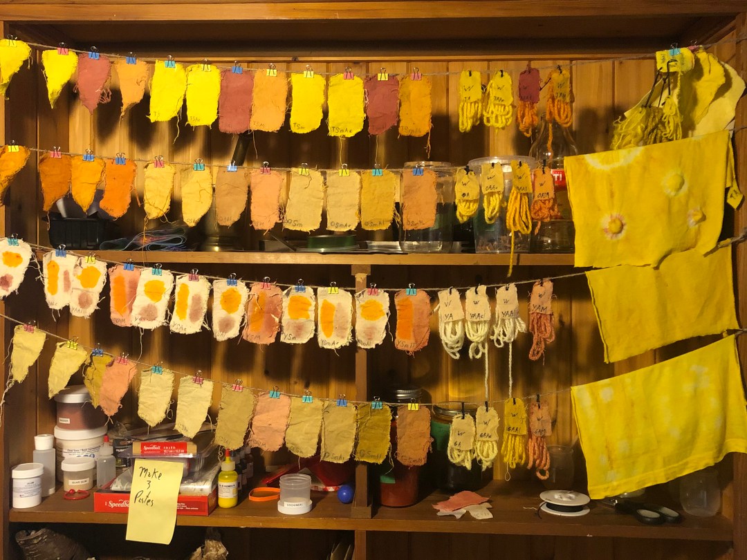 The main fabrics are cotton canvas and wool yarn. I've had some old canvas lying around for years... often used as a drop sheet for house painting. I had to scour (wash) it very well to remove as much sizing as possible (and other crap from it). My dyes are made from : Turmeric, Goldenrod, … Continue reading Fabrics – Colour Mapping Challenge – Part 1 – Ready to Catalogue my Results