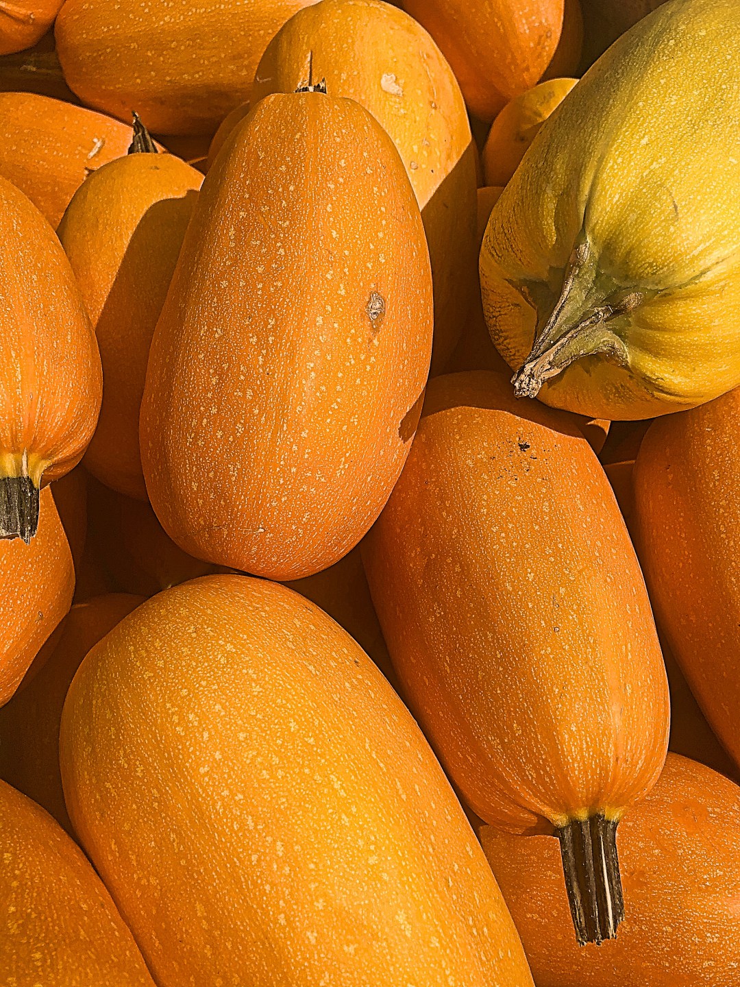 Another visit to the Farmer's Market and a huge bin full of these orange beauties. Almost pumpkins, but not quite. Textured like zucchini, but not quite. The size of the average butternut squash, but not quite. It's orange, but the variations of hues and intensities on each squash make it... well, not quite orange either. … Continue reading That’s An Orange of a Different Colour
