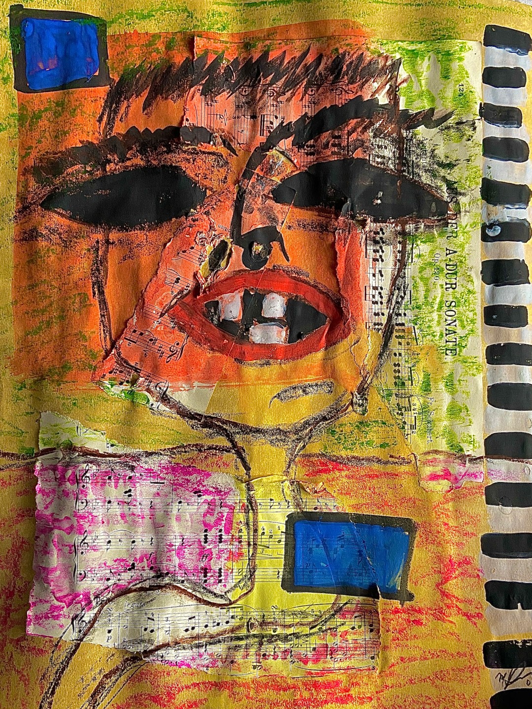 See T'Hed Forty-Nine... just because! Boredom helps inspire new directions... sometimes! I have this weird paper: yellow with a parchment mottling on it, 11" x 17"... could be a special printer paper, as it isn't very thick. I decided to glue on some old music sheet (cotton) paper pieces to it, paint on some gouache, … Continue reading Working out an Inspiration – T’Hed Fifty: Is the story getting more layers?