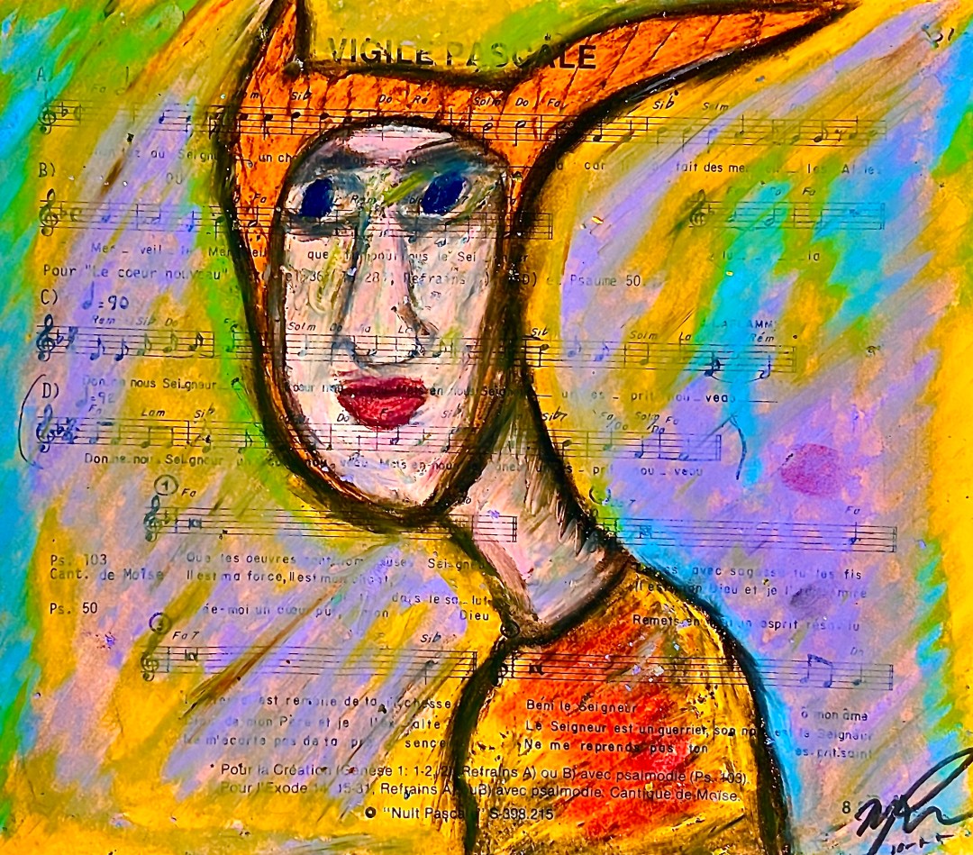 I've been wanting to revisit some old portrait drawings / paintings and just hadn't been able to get them going... this is the first. of many to come... she is done in film pastels on salvaged music sheets. The pastels really pop on this paper. he inspiration was one of my frequent inner dialogues with … Continue reading Aren’t I Pretty – Music-book Doodles 2022