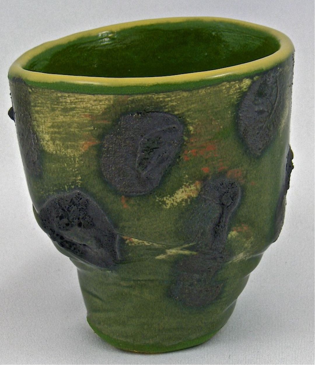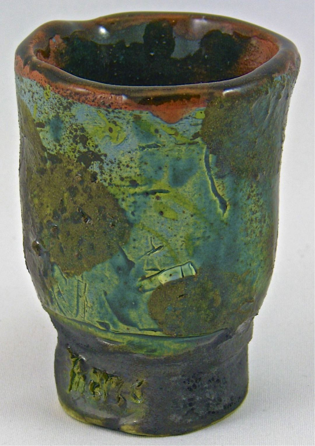 Tea Bowl #12 The Technique: How I did this awesomeness! Combining a slab-building and stick-hit-forming method to make the actual bowl, I worked it wet and fast. While still wet, I painted the whole thing in a green underglaze and tipped the rim clean, dabbed on some grog mixed with manganese stain, then I set … Continue reading 500 Works of Art on the Road to Your Creativity #236 – Tea Bowl #12