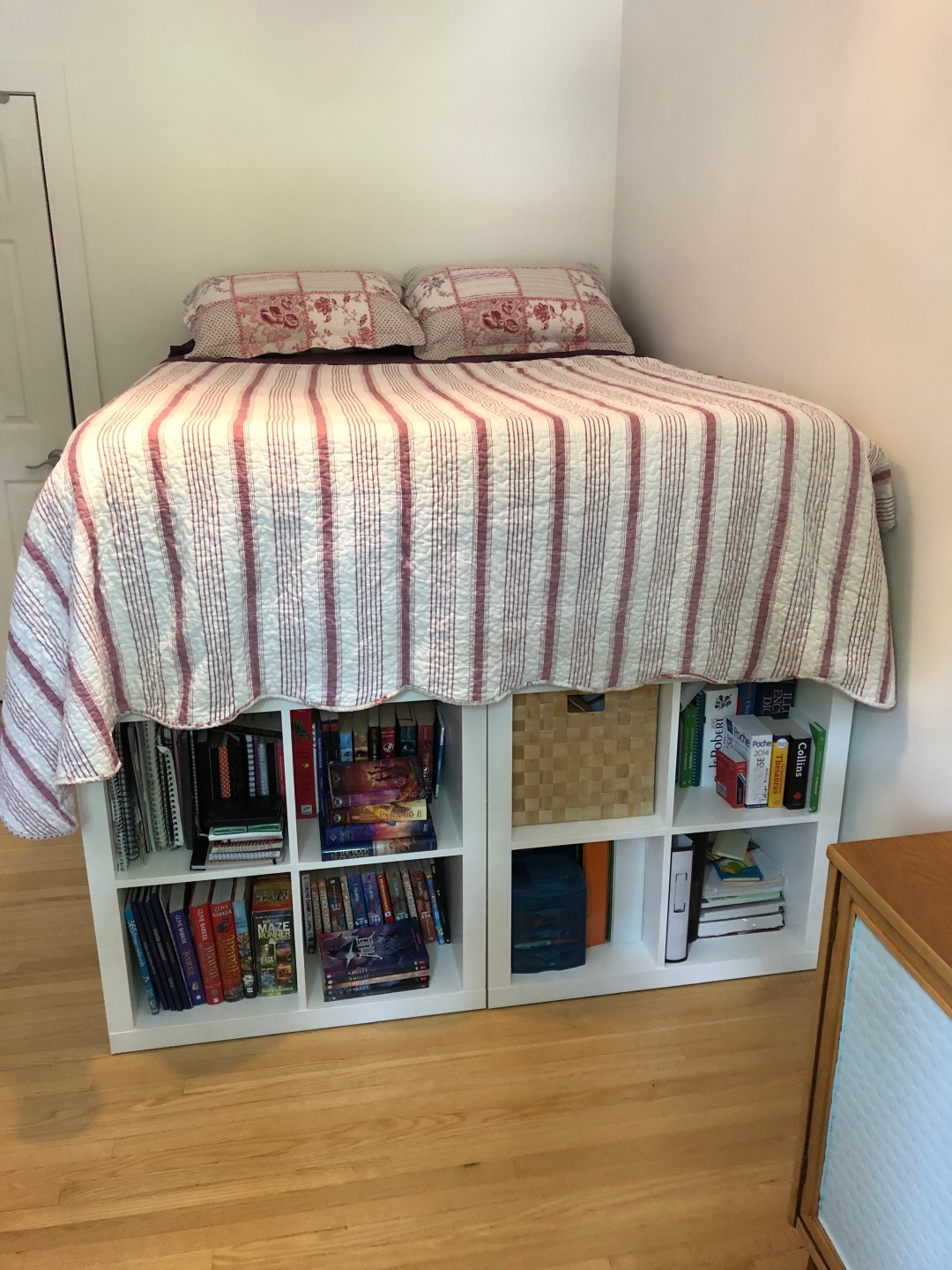 Over the years I seemed to have accumulated quite the load of "Kallax" Ikea shelves. They always started out as nice display cases and storage option, but after years of being moved around and ending up in my garage, they have seen better days... until today, that is! My newly teenaged kid wanted a cooler … Continue reading Repurposed Into a Bed – Thank you Ikea